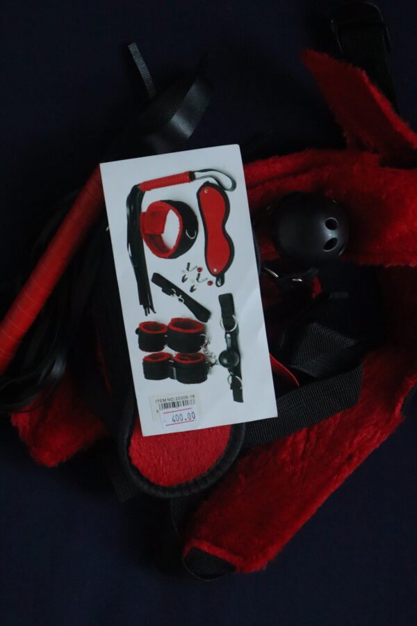 El kit contiene mordaza, látigo, esposas, collar y antifaz para los ojos, ideales para experimentar sensaciones nuevas, fortalecer la confianza y salir de la rutina en pareja. Todos los elementos están pensados para un uso cómodo y controlado, apto tanto para principiantes como para quienes ya tienen experiencia.